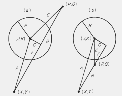 or left turn angle and a radius for the `female' within which all `males' are