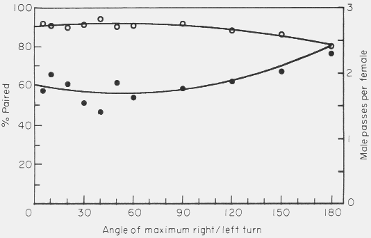 or left turn angle and a radius for the `female' within which all `males' are