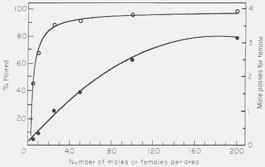 higher female density. A high rate of encountering male-female pairs by a