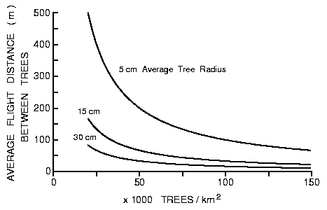 eight possible directions at random between adjacent trees. This flight