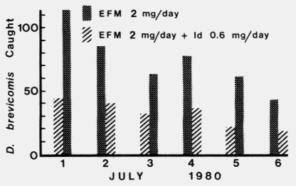 reduced the attraction of both sexes in flight to a mixture of myrcene and the